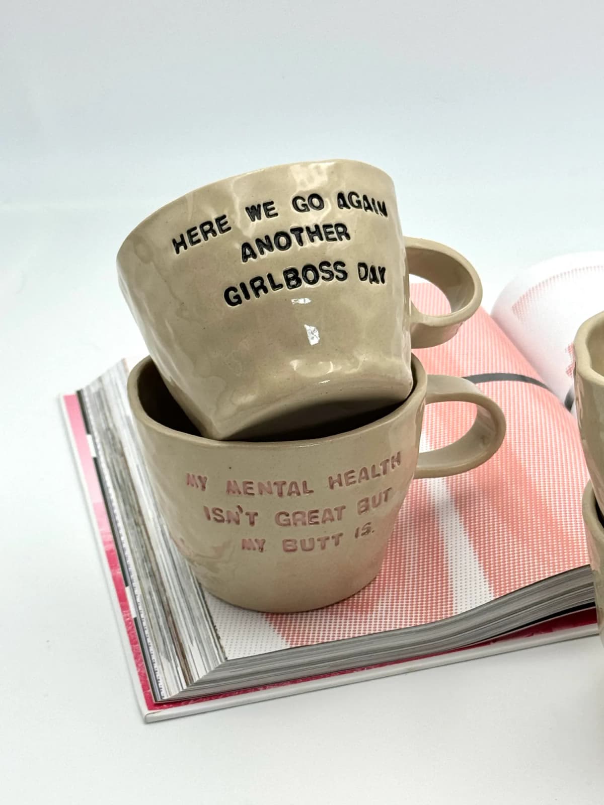 With full personalization options, you can add a text that best reflects your character or style. Choose the font color and decide whether your mug will have a handle or remain in a minimalist, handle-free form. Each piece has an individual shape, which means no two mugs are exactly alike.