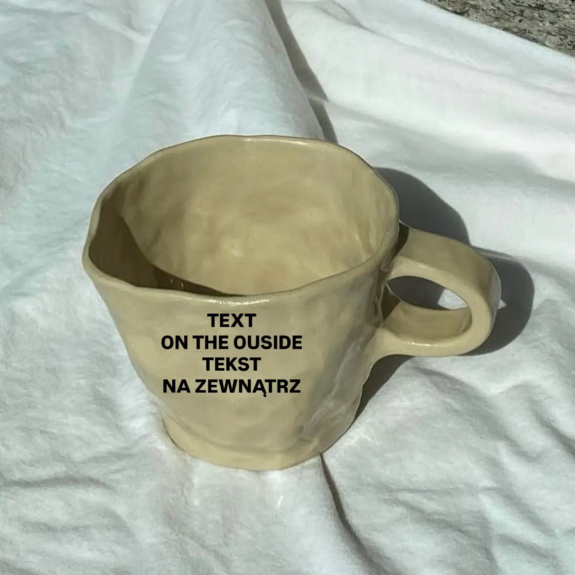With full personalization options, you can add a text that best reflects your character or style. Choose the font color and decide whether your mug will have a handle or remain in a minimalist, handle-free form. Each piece has an individual shape, which means no two mugs are exactly alike.