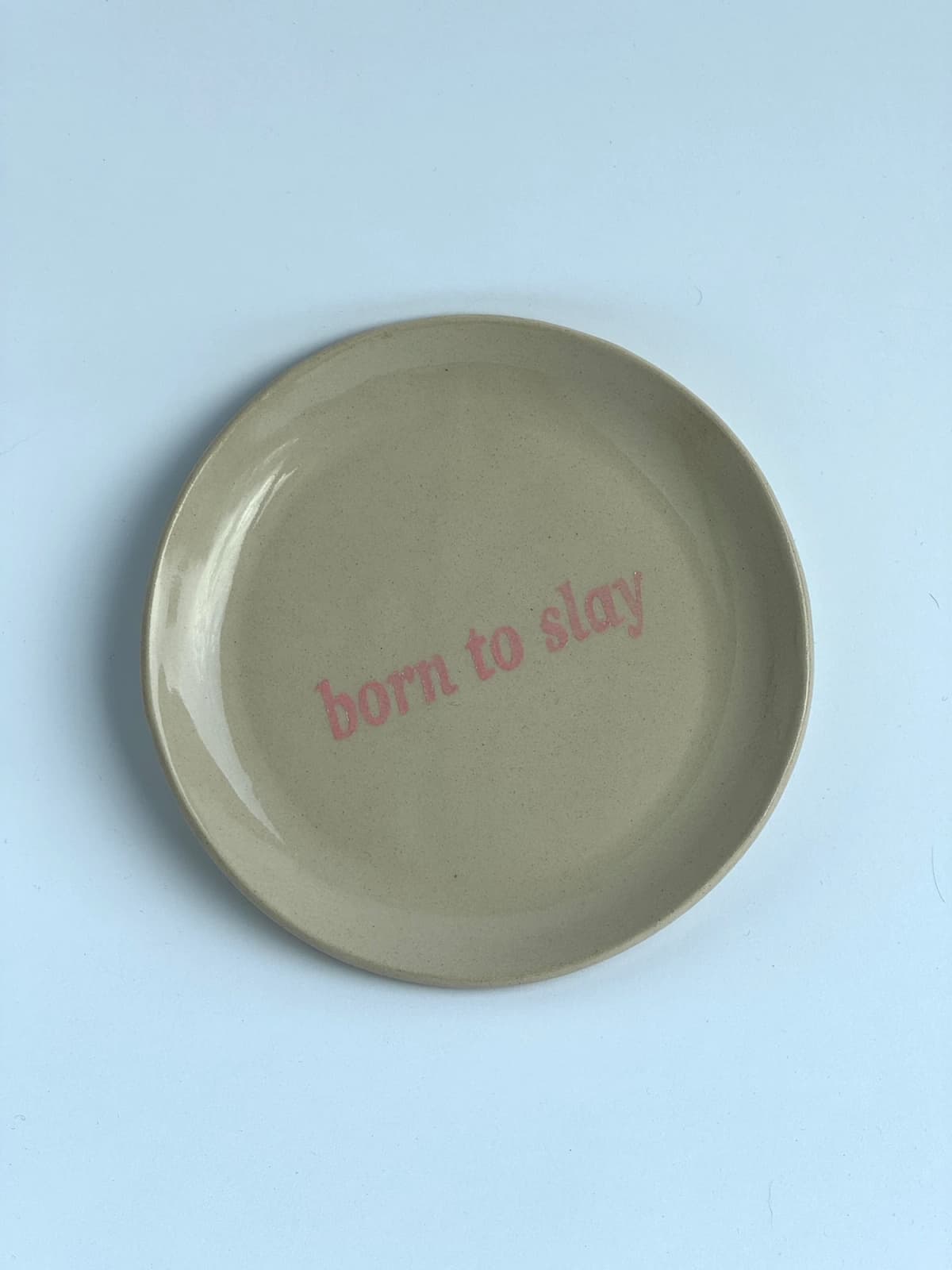 Handmade plate with the text: 'born to slay'.